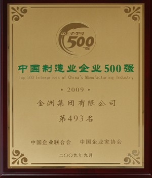 2009年中國制造業(yè)企業(yè)500強(qiáng)證書…