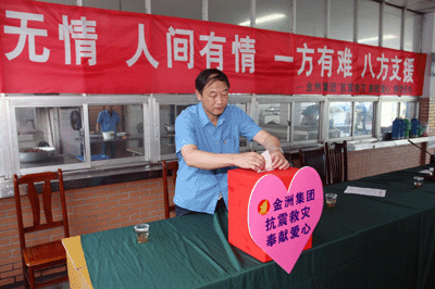 浙江金洲管道科技股份有限公司全體干部員工積極響應(yīng)號召,踴躍為災(zāi)區(qū)人民捐款。5月15日上午,在管道科技食堂舉行了“抗震救災(zāi),奉獻(xiàn)愛心”捐款儀式,金洲集團(tuán)公司黨委書記、董事長俞錦方、副董事長、工會主席徐水榮參加了捐款儀式。捐款儀式上副董事長徐水榮宣讀了公司黨委文件,董事長俞錦方作了重要講話要求大家充分發(fā)揚(yáng)金洲人“講責(zé)任,有愛心,愛奉獻(xiàn)”的傳統(tǒng),積極投身到“抗震救災(zāi),奉獻(xiàn)愛心”活動中去;隨后在公司俞董事長帶頭捐款下,全體干部職工紛紛慷慨解囊,一份份飽含關(guān)切之情的捐款被投進(jìn)了捐款箱中。