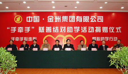 2007年12月16日上午,金洲集團(tuán)借座湖州市民政局會(huì)議室,舉行“手牽手”慈善結(jié)對(duì)助學(xué)活動(dòng)捐贈(zèng)儀式,向市區(qū)52名貧困學(xué)生發(fā)放了慈善結(jié)對(duì)助學(xué)卡,其中大學(xué)生7名,每人每學(xué)年受助標(biāo)準(zhǔn)是1000元,高中生45名,每人每學(xué)年受助標(biāo)準(zhǔn)是800元,總受助資金9.84萬元。