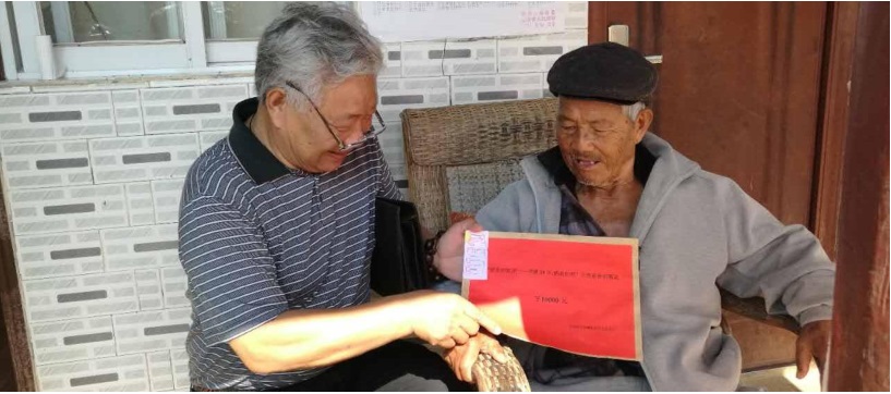 ▲慰問墨江縣京平村那海組烈屬李榮升。李榮升,現(xiàn)年61歲,家住墨江縣京平村那海組,交通不便??赐?dāng)天因山路崎嶇無法抵達(dá),在鄉(xiāng)鎮(zhèn)留宿一晚,次日開車幾個(gè)小時(shí)才到達(dá)。李榮升2個(gè)月大還在襁褓之中時(shí),其父為國(guó)獻(xiàn)身,家庭被授予烈屬稱號(hào)。2歲時(shí)隨母改嫁,前年母親去世,現(xiàn)與繼父和一個(gè)異胞兄弟一起生活。自己和40多歲的弟弟一直未成家,繼父年事已高,自己體弱多病。