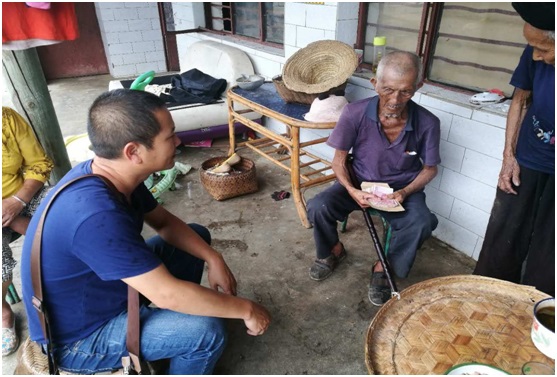 ▲慰問瀾滄縣勐朗鎮(zhèn)大平掌村張貴寨參戰(zhàn)老兵李文清