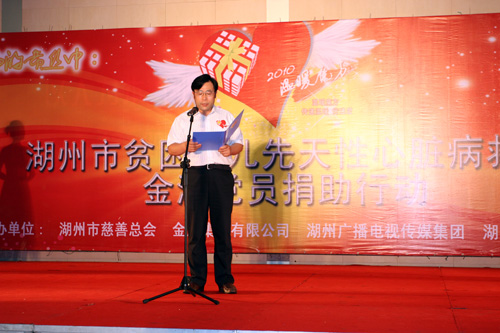 6月28日上午,金洲集團(tuán)全體共產(chǎn)黨員齊聚金洲管道楊家埠園區(qū),為救治湖州市貧困少兒先天性心臟病患者舉行了現(xiàn)場(chǎng)捐助儀式。湖州市慈善總會(huì)會(huì)長沈榮林、金洲集團(tuán)董事長俞錦方、湖州廣播電視總臺(tái)臺(tái)長吳寶宏、湖州市中心醫(yī)院院長周國順等領(lǐng)導(dǎo)出席儀式并發(fā)表講話。