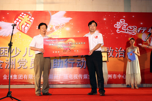 在捐助現(xiàn)場(chǎng),金洲全體共產(chǎn)黨員紛紛慷慨解囊,為患病兒童送去自己的一份支持和關(guān)愛,以實(shí)際行動(dòng)幫助他們順利接受治療,從而擺脫病痛、健康成長。此次現(xiàn)場(chǎng)黨員捐款近3萬5千元,加上企業(yè)捐款57萬元,共計(jì)60.5萬將全部用于患病少兒的救治。