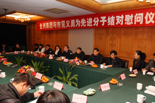 在2010年底的湖州市見義勇為基金會成立大會上,集團(tuán)公司捐贈基金會成立原始資金50萬元,當(dāng)俞錦方董事長得知我市18位見義勇為模范飽受著病殘和貧窮的困擾,當(dāng)即提出了開展見義勇為模范結(jié)對慰問活動,由公司黨員和中層干部與見義勇為先進(jìn)分子“一對一結(jié)對幫扶”,此舉得到了浙江省公安廳、湖州市公安局領(lǐng)導(dǎo)的高度重視和湖州市見義勇為基金會的大力支持,并商議在春節(jié)前開展見義勇為先進(jìn)分子結(jié)對慰問活動。