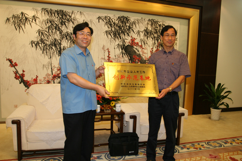 在聽取了俞總的匯報后,王伯安充分肯定了金洲集團(tuán)在人才隊伍建設(shè)、創(chuàng)新人才管理、維護(hù)和諧穩(wěn)定等多方面的工作,向集團(tuán)授予“湖州市企業(yè)人才工作創(chuàng)新示范基地”的獎牌,并關(guān)切詢問了企業(yè)的發(fā)展經(jīng)營情況。他表示,市委組織部、市勞動和社會保障局會進(jìn)一步加強(qiáng)與企業(yè)的溝通交流,全面做好人才工作的對接,為企業(yè)不斷完善人才體系建設(shè)提供輔導(dǎo)和幫助。