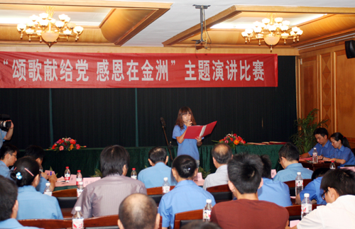 為了紀念建黨九十周年,慶祝金洲集團創(chuàng)建三十周年,金洲集團于8月18日下午舉行了“頌歌獻給黨 感恩在金洲”主題演講比賽,來自生產(chǎn)經(jīng)營各條戰(zhàn)線的13名青年員工參加了此次比賽。
