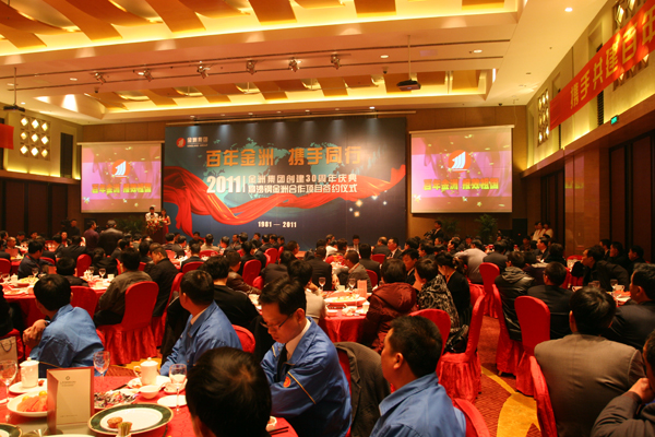 晚上,舉行了慶典招待晚宴。集團(tuán)公司董事局與50名員工代表同唱的一曲《金洲之歌——愛(ài)成就夢(mèng)想》拉開(kāi)了晚會(huì)的序幕,一軍宣傳隊(duì)及員工代表作了精彩的文藝演出,全體嘉賓和與會(huì)人員共同為“百年金洲”事業(yè)的發(fā)展舉杯同飲。