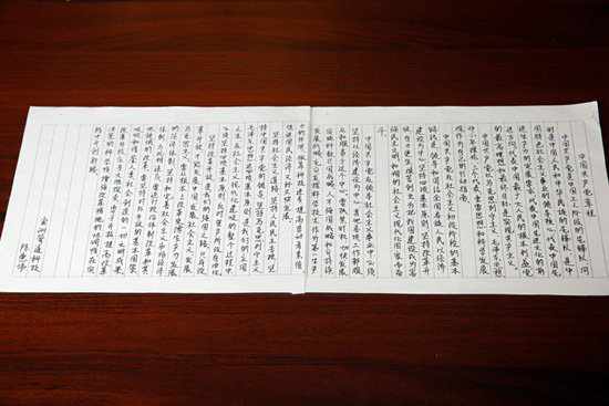 金洲廣大黨員、職工通過抄寫黨章表達(dá)對(duì)中國共產(chǎn)黨的無限熱愛。通過抄寫黨章,大家逐條逐句逐字領(lǐng)會(huì),不斷加深理解,堅(jiān)定理想信念,黨性覺悟和工作熱情明顯提高,在日常學(xué)習(xí)、工作和生活中積極發(fā)揮先鋒模范作用,形成了良好的工作、學(xué)習(xí)氛圍。