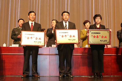 2月4日上午,全市深化“四個年”活動暨作風建設動員大會在湖州大劇院隆重召開,市委書記裘東耀講話,市委副書記、市長陳偉俊主持會議,市四套班子領導、市縣區(qū)主要領導、有關的企業(yè)主要負責人、受表彰的先進集體和先進個人代表等參加會議。金洲集團榮獲2016年度湖州市金牛企業(yè)、湖州市納稅大戶兩項重要榮譽受到市委市政府的隆重表彰,集團董事長俞錦方代表公司上臺領獎。