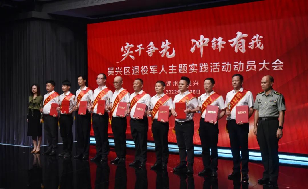 “八一建軍節(jié)”前夕,7月30日下午,“實干爭先 沖鋒有我”吳興區(qū)退役軍人主題實踐活動動員大會在吳興區(qū)融媒體中心順利召開。出席本次活動的領(lǐng)導(dǎo)有吳興區(qū)委書記、區(qū)委退役軍人事務(wù)工作領(lǐng)導(dǎo)小組組長、區(qū)雙擁工作領(lǐng)導(dǎo)小組第一組長趙如浪,區(qū)委副書記、政法委書記、織里鎮(zhèn)黨委書記、區(qū)委退役軍人事務(wù)工作領(lǐng)導(dǎo)小組常務(wù)副組長、區(qū)雙擁工作領(lǐng)導(dǎo)小組常務(wù)副組長楊治,吳興區(qū)委宣傳部長朱小芳,吳興區(qū)人武部政委劉小翔,吳興區(qū)副區(qū)長金斌斌,區(qū)雙擁工作領(lǐng)導(dǎo)小組副組長吳士彬等。市退役軍人事務(wù)局、省軍區(qū)湖州干休所有關(guān)領(lǐng)導(dǎo),區(qū)有關(guān)部門代表,各鄉(xiāng)鎮(zhèn)街道分管領(lǐng)導(dǎo)及區(qū)社會化擁軍協(xié)會代表參加本次活動。金洲集團董事長、吳興區(qū)社會化擁軍協(xié)會會長俞錦方出席并上臺作成立“共富先鋒隊和應(yīng)急先鋒隊”的倡議表態(tài)發(fā)言。