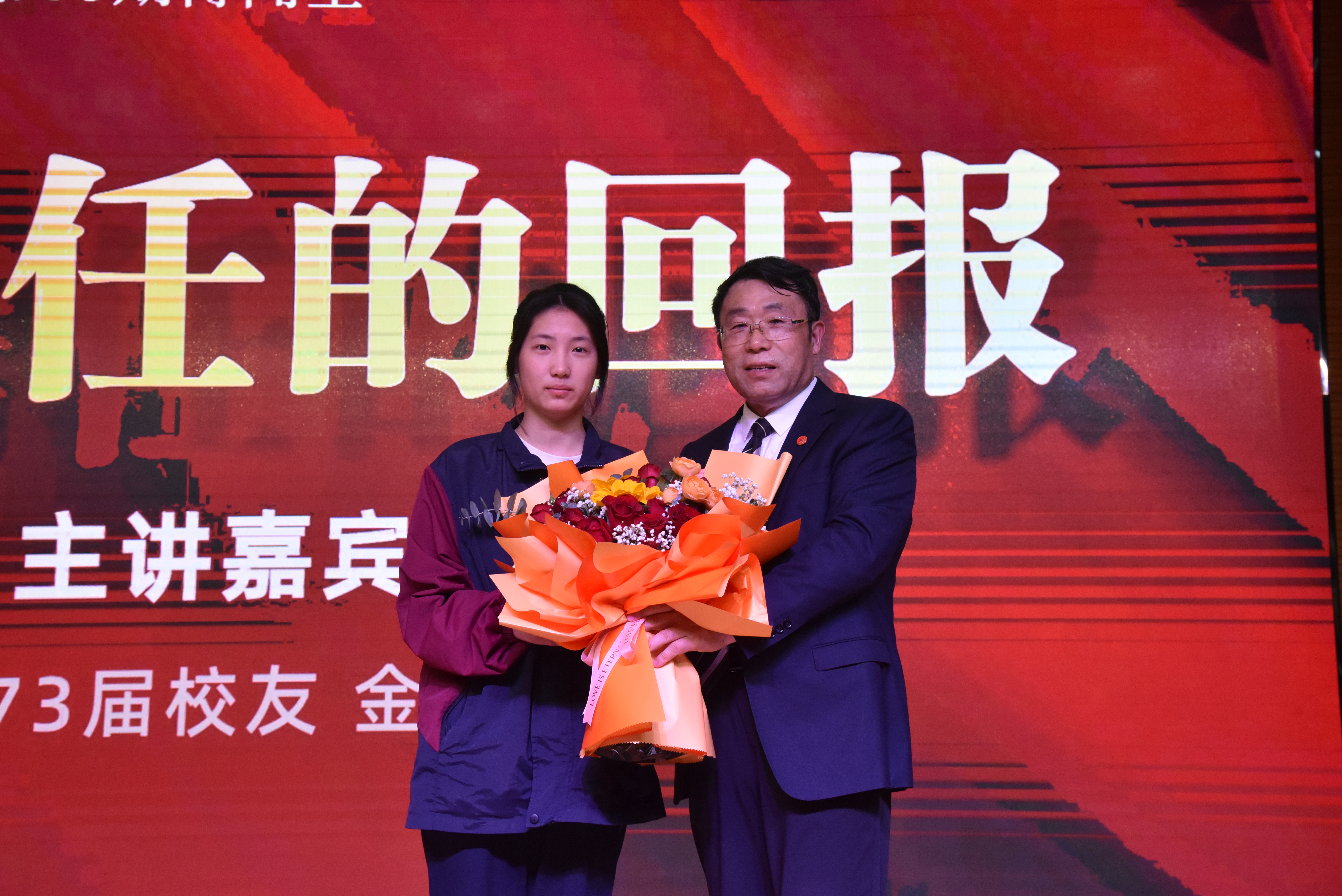隨后,俞錦方董事長在同學(xué)們熱烈的掌聲中來到吳興高級中學(xué)博聞堂,以《信任的回報》為題作主題講座。俞錦方董事長通過一個個生動的成長故事,串聯(lián)起自己從年少求學(xué)到從軍入伍,再到退伍創(chuàng)業(yè)的人生軌跡,向吳興高級中學(xué)的同學(xué)們傳遞了愛黨、愛國、忠誠、守信的人生信條。鼓勵莘莘學(xué)子要有理想、有抱負(fù),樹立正確的人生觀、價值觀,努力學(xué)習(xí),為實(shí)現(xiàn)中華民族偉大復(fù)興中國夢而不懈奮斗!