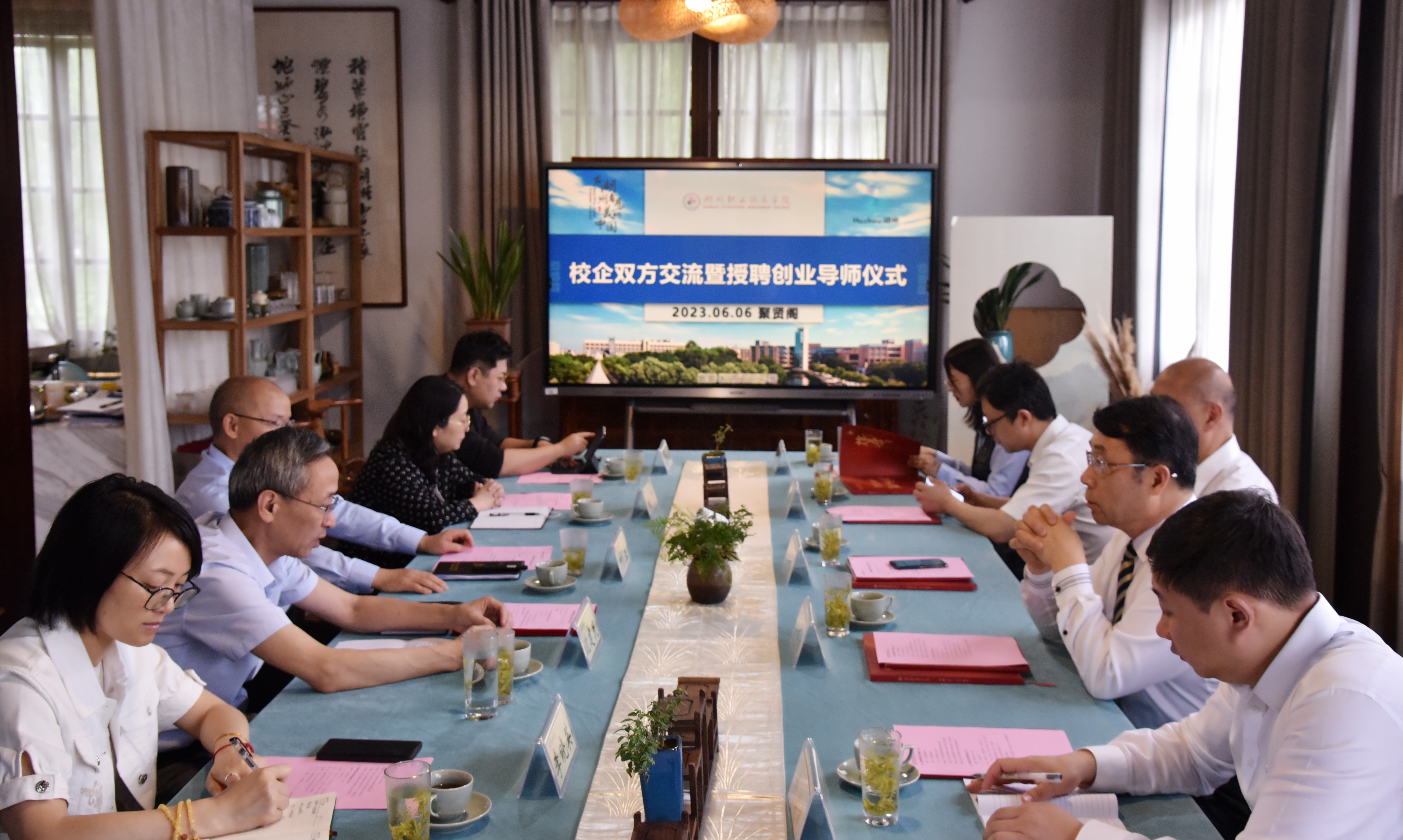 俞錦方董事長在交流中表示,湖州職業(yè)技術(shù)學院的智能制造和旅游專業(yè)與金洲集團高端制造和文旅康養(yǎng)產(chǎn)業(yè)十分契合,希望深入溝通交流合作,公司愿意成為學生們的實踐基地,也希望更多的優(yōu)秀畢業(yè)生能加入金洲大家庭中。他表示,很榮幸受聘成為湖州職業(yè)技術(shù)學院的創(chuàng)業(yè)導師,這既是一份榮譽也是一份責任,能夠為廣大學子成長發(fā)展貢獻綿薄之力而感到由衷高興。人才培養(yǎng)是社會發(fā)展的根基,學校老師能夠帶給學子們專業(yè)的學術(shù)知識,而企業(yè)家可以將多年創(chuàng)業(yè)經(jīng)驗與學子們進行探討交流,為他們答疑解惑,幫助他們解決工作的實際問題,提供就業(yè)創(chuàng)業(yè)建議,為培養(yǎng)高水平和極具創(chuàng)新能力的綜合人才貢獻飽滿的熱情與指導。